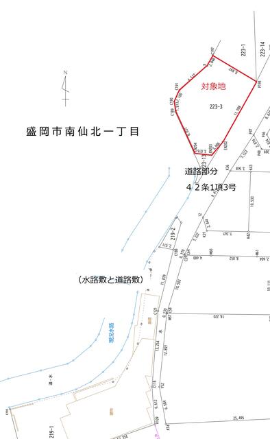 沿線居住区域)※南側は現在水路と道路であり、道路境界不明確につき、42条1項3号道路もしく2項道路。
